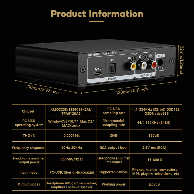 PC-USB input Sampling Frequency: 44.1-384khz (32bit) 、DSD128、DSDNative256