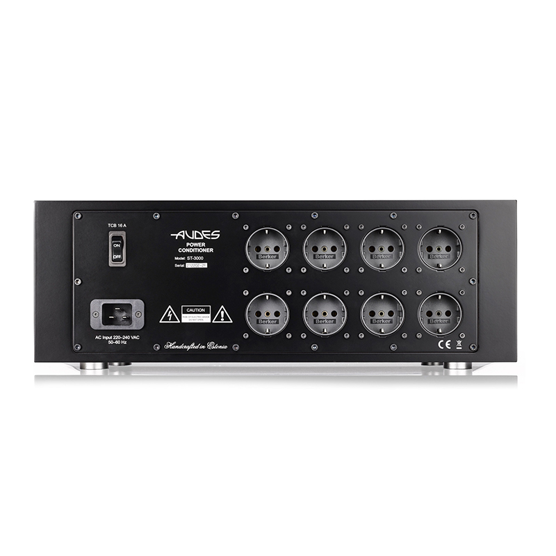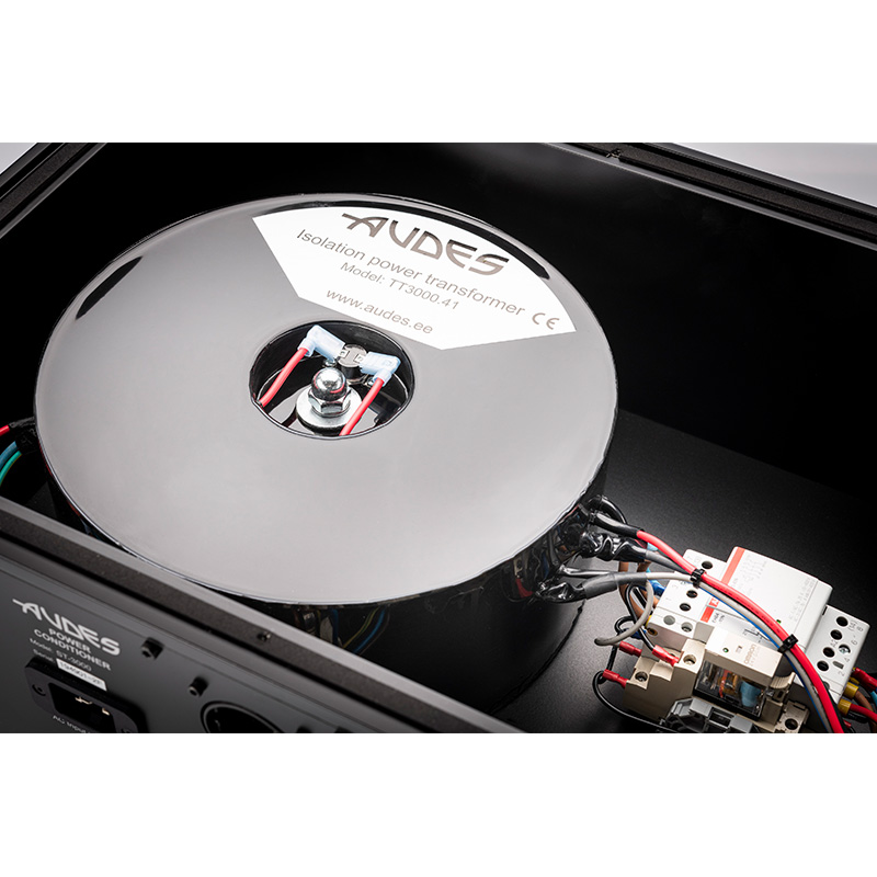 The Audes ST-900, ST-1500 and ST-3000 power conditioners are designed to power high-end and high-fidelity AV devices. The main element of the device is a 230 VAC/115 + 115 VAC balancing ring transformer designed and developed by Audes, which isolates the equipment from the household network. Despite the significant power rating of such transformers, the construction of the power conditioner completely excludes harmful electromagnetic radiation.