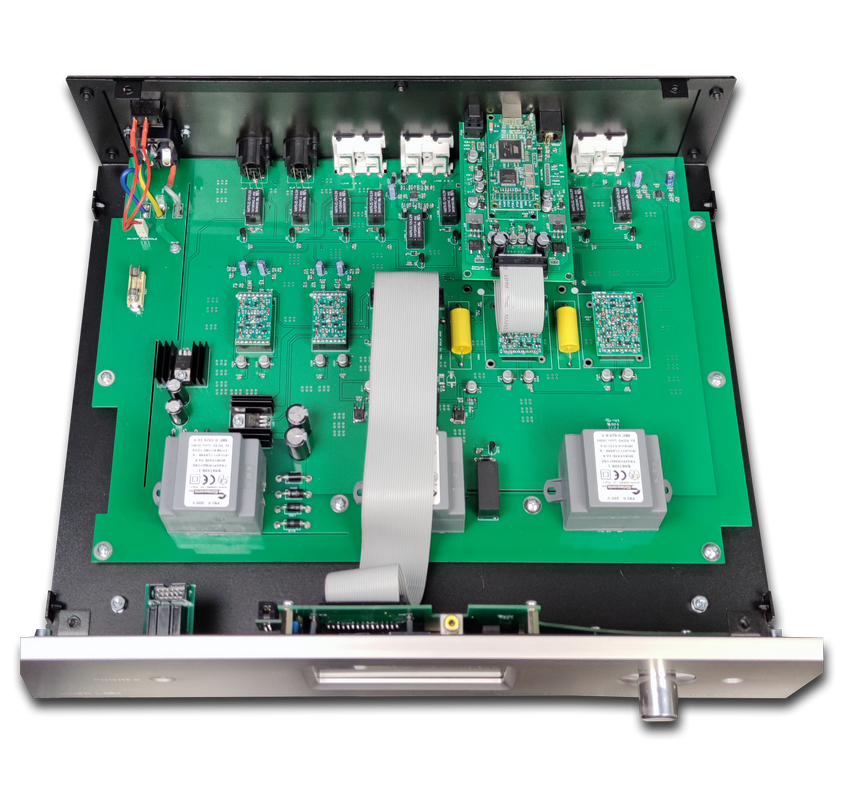 The transformers are also resin coated to minimize magnetic induction in the delicate amplification circuits to the advantage of sound contrast and the reduction of background noise.in our approach to the native balanced philosophy, the single-ended signals of the RCA inputs are also internally converted. The special HDCA sections serve this delicate task by increasing the dynamic crest factor by almost 3 db compared to traditional preamps that do not use this circuit approach.The