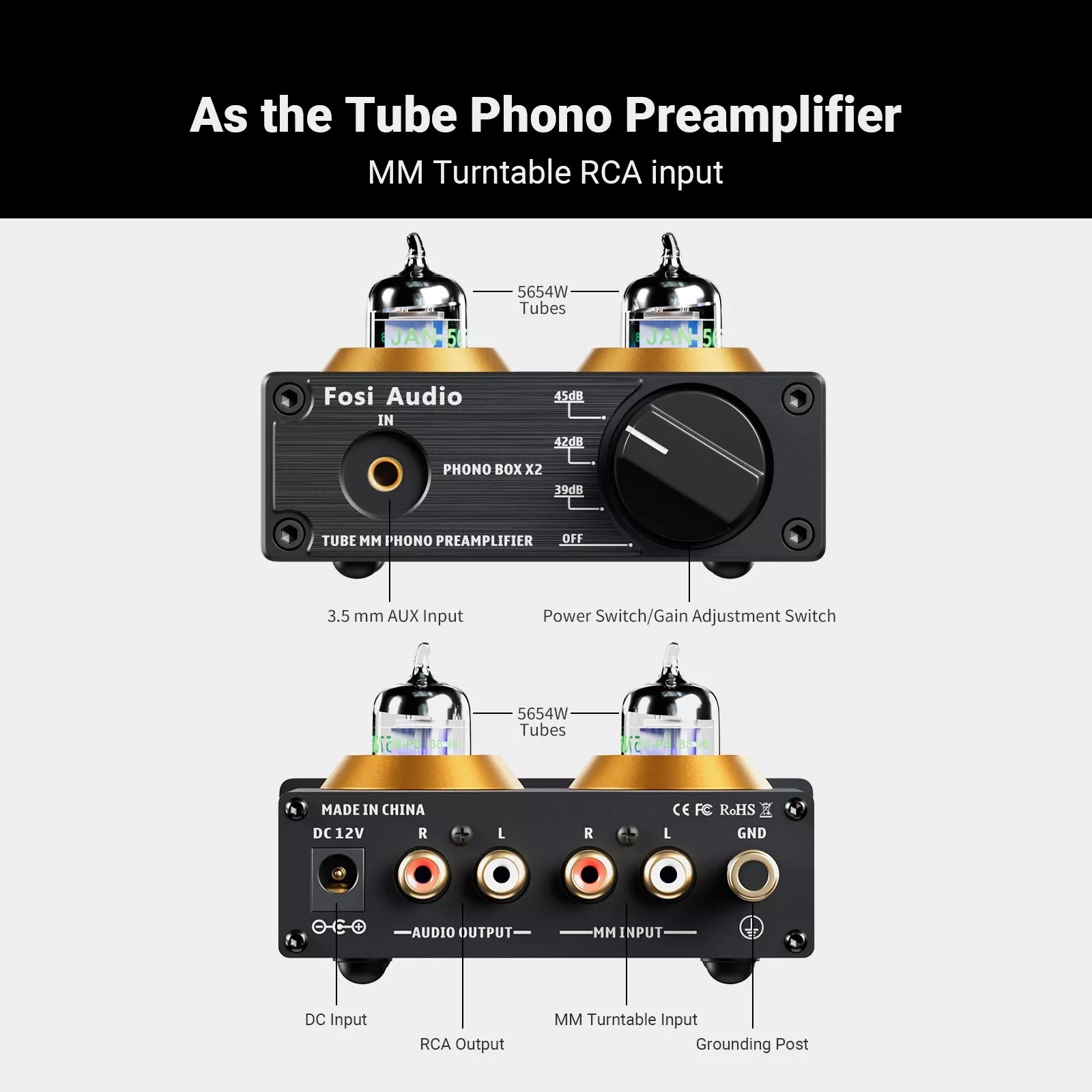 • Package Content: You will get 1 x Box X2 phono preamp, 2 x vacuum tubes, 1 x RCA cable, 1 x power adaptor, and 1 x user Manual.