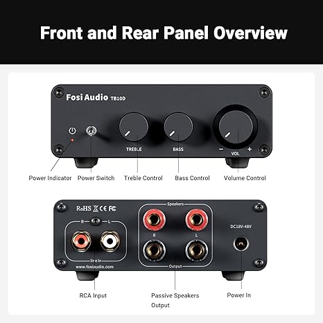 • If you want to play your favorite songs entertainingly, a mini stereo amplifier is the best way to go. Fosi Audio TB10D is an analog input(RCA) Class-D audio amplifier that easy to install to build your home audio sound system.