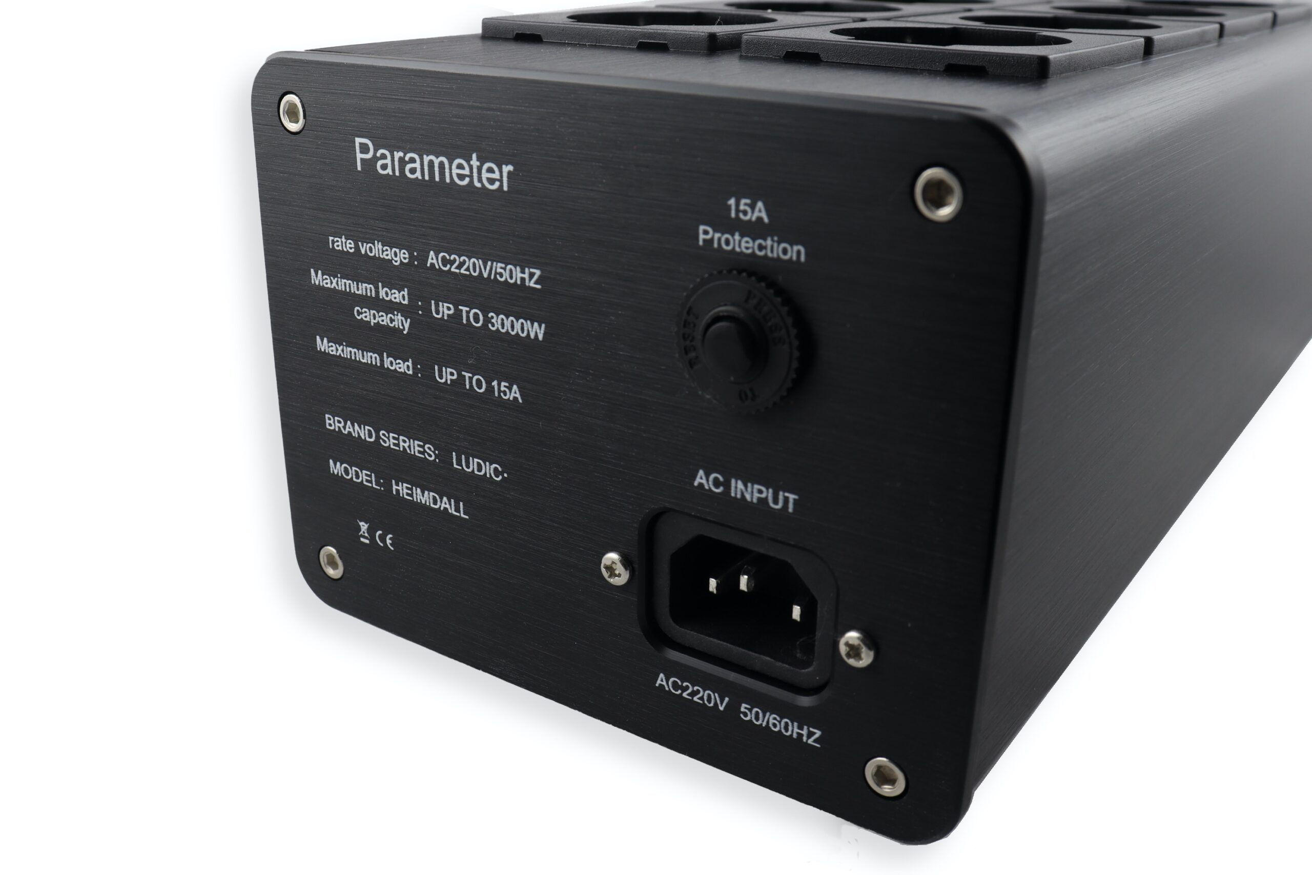 Eight high-quality power sockets are available at the top panel. The 8 european standard its plastic engineering, aviation engineering ABS (fire proof, high temperature resistant, 30% glass fiber). Compared with the Universal seat in the market, the characteristics are more qualitative breakthrough. The European standard seat is made of high-purity phosphor Bronze, and the inner copper is also made of high-purity phosphor bronze, which reduces the resistance, improves the current, and improves high-power effect! So that the filtering effect can be described as the ultimate!
